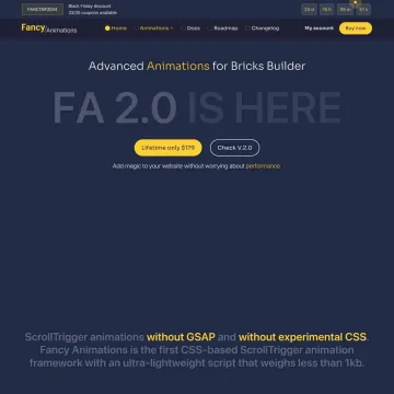 Fancy animation is and advanced animation for Bricks Builder. It uses CSS instead of GSAP. The latest release is V2.0